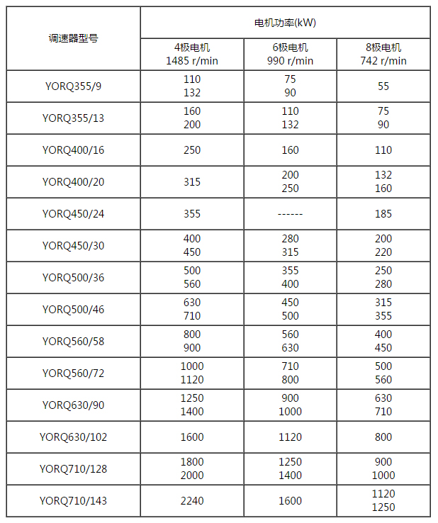 表2 YORQ短系列永磁耦合調(diào)速器與匹配電動(dòng)機(jī)功率對照表