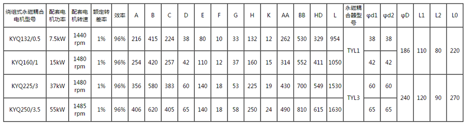四、(輔)繞組永磁耦合調(diào)速電機主要技術參數(shù)